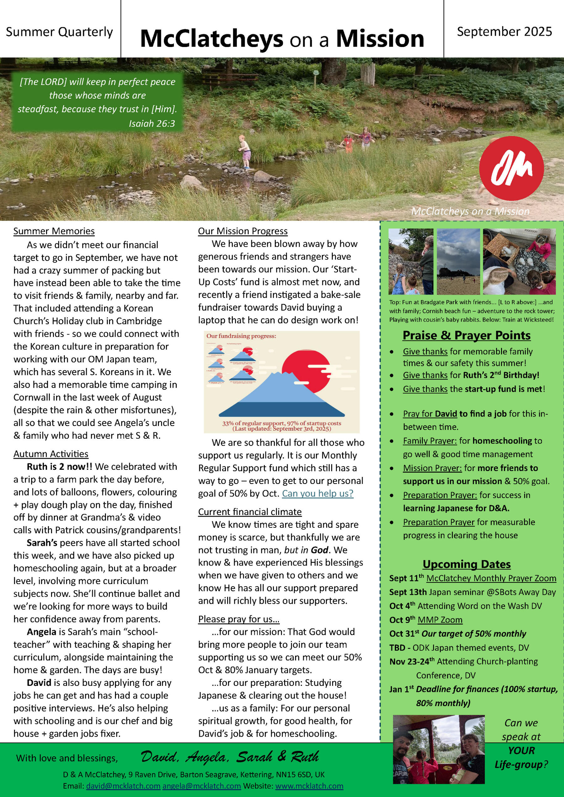 Mission Prayer: for more friends to support us in our mission so we reach our 50% monthly goal by October's end.